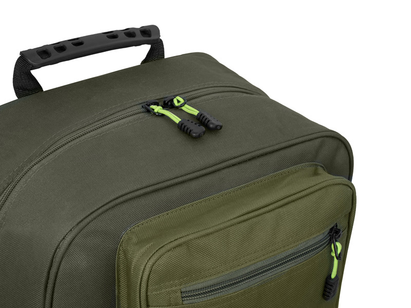 Dômyselne premyslené rozloženie delí priestor na veľkú hlavnú komoru a dve predné vrecká. Hlavná časť ponúka dostatok miesta na oblečenie aj rybárske príslušenstvo a navyše je vybavená vystuženou prepážkou.