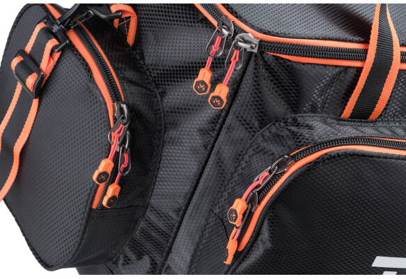 Veľká a pevná prepravná taška na prepravu vaničiek, misiek, držiakov prútov, systémových boxov a ďalších doplnkov, ktoré potrebujete pri love na feeder alebo plávanú. Hlavná komora aj všetky vrecká sú vďaka použitému matreriálu výrazne vystužené. Taška je opatrená pevnými ušami na nosenie v ruke a nastaviteľným luxusným popruhom cez rameno s extrémne silným polstrovaním. To zaisťuje dokonalý komfort pri jej nosení aj v prípade plného naloženia. Obaly tašky a ďalšia batožina série TMX sú vyrobené z prémiového, extrémne silného materiálu s luxusným dizajnom v štýle splietaného carbonu. Tento materiál je úplne nepremokavý a výborne umývateľný. Na celej sérii TMX sú použité záťažové zipsy najvyššej kvality s praktickými tiahlami Mivardi.
